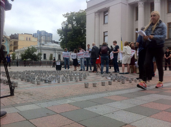 Для этого они принесли под Верховную Раду 450 именных тюремных кружек.