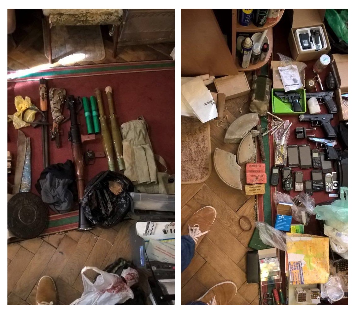 Во время проведения обысков у задержанных сотрудники спецслужбы изъяли большое количество огнестрельного оружия, взрывчатки и комплектующих для ее изготовления, в частности: гранатометы РПГ-7 и РПГ-26, гранаты РГО, Ф-1, РГД—5, пять килограммов взрывчатки марки IX 25 и 600 граммов тротила, три электродетонатора, три пистолета и большое количество патронов различного калибра. Продолжаются обыски и другие неотложные следственные действия.