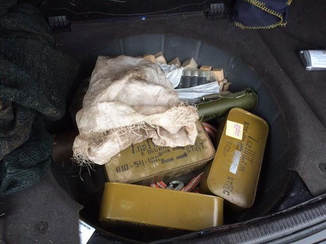 При осмотре авто оперативники СБУ изъяли гранатомет РПГ-22, пороховой заряд к гранатомету РПГ-7, 22 выстрела ВОГ-17 для автоматического гранатомета, противопехотную мину, около трех тысяч патронов различного калибра, четыре сигнальные ракеты и тому подобное.