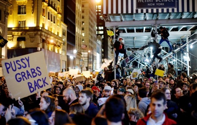 В Чикаго митингующие блокируют улицы и выкрикивают лозунги: «Нет Трампу, нет KKK (Ку-клукс-клану – ред), нет фашистам в США». 5000 человек были на акции протеста в Нью-Йорке, по оценкам полиции.