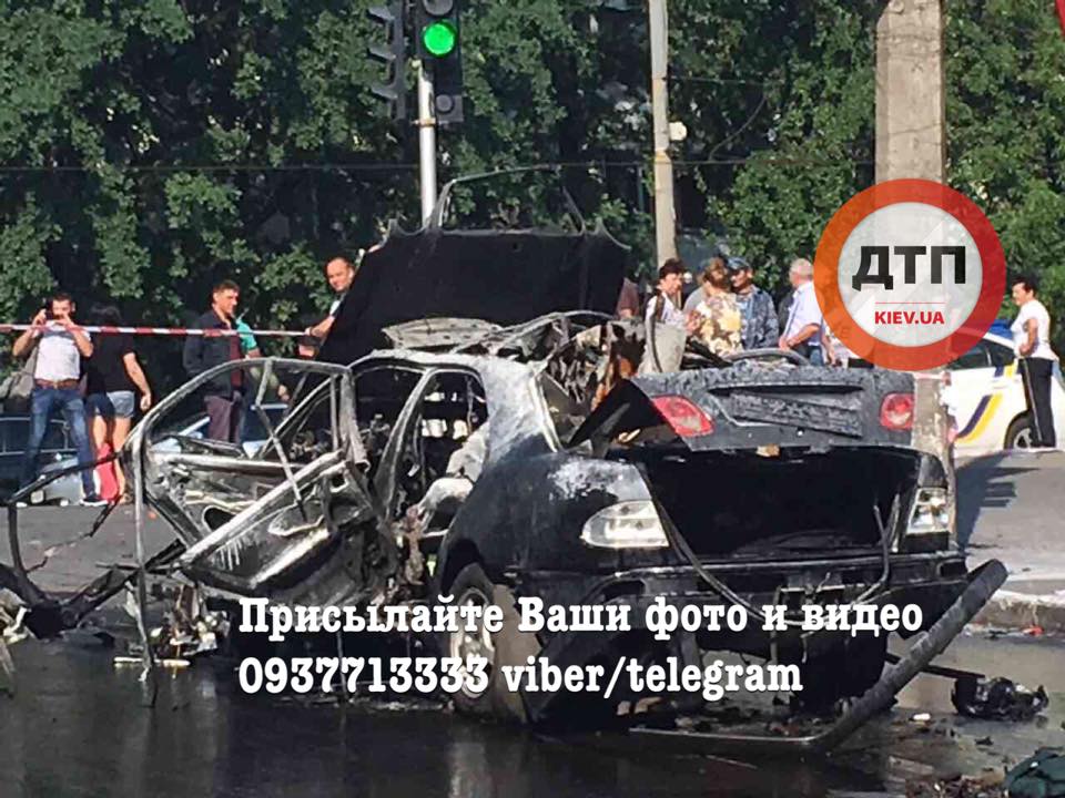 По данным сообщества dtp.kiev.ua, «Мерседес» на углу Соломенской и Механизаторов взорвался прямо на ходу. В момент взрыва водитель находился в салоне. Части автомобиля разлетелось по периметру 100 метров и задело другие авто.