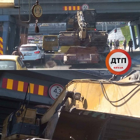 Так, как передает dtp.kiev.ua, водитель тягача с экскаватором не вписался в мост возле станции метро «Левобережная».