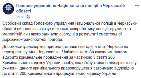 По информации спикера патрульной полиции Черкасской области Зои Вовк, показания свидетелей разнятся, поэтому на установление обстоятельств ДТП потребуется некоторое время.