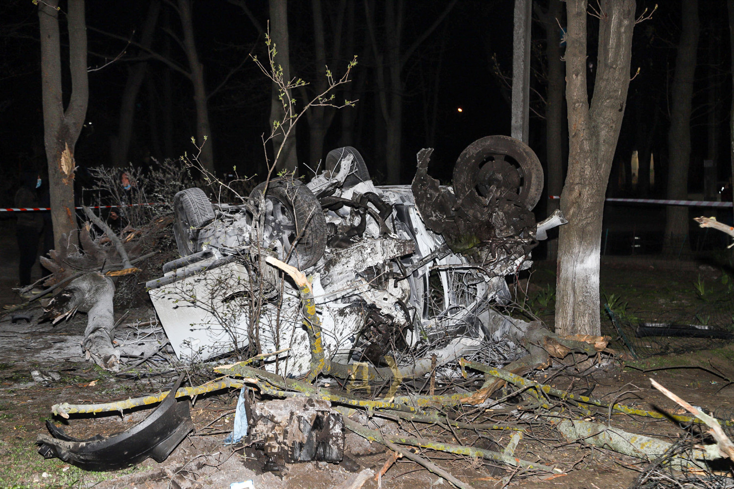 Стало известно, что автомобиль Ford Kuga «на большой скорости вылетел с проезжей части на Люстдорфской дороге, несколько раз перевернулся и улетел внутрь двора дома №88б, где врезался в деревья».