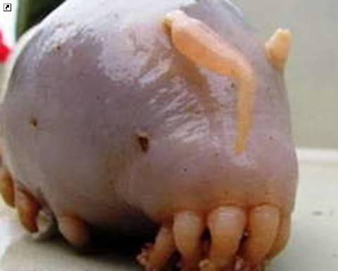 Морская свинья - именно так прозвали ученые это животное из-за розового цвета и маленьких пухлых ног, похожих на свиные. Обитает глубоко под водой. И за свою «красоту» этому созданию можно смело отдать титул самого уродливого живого существа в мире.