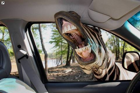 Зебра улыбнулась семье, посетившей Pine Mountain Wild Animal park в Джорджии.