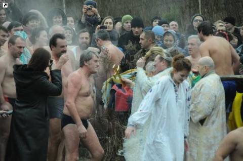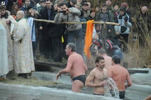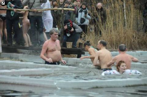 Бывший Президент Украины Виктор Ющенко в среду, 19 января, в праздник Крещения Господнего традиционно купался в казацком поселке «Мамаева слобода».