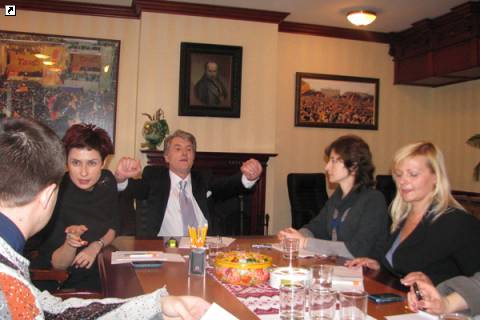 В Сети появились фотографии из нового рабочего места экс-Президента Виктора Ющенко. На снимках видно, что созданный «Институт президента Виктора Ющенко «Стратегические инициативы» расположился на Подоле в здании на улице Спасской, 37. В этом же здании разместились центральные партийные структуры НС-НУ. На стендах внутри помещения выставлены книги одноименного авторства. На стенах висят фотографии с «оранжевой» революции. Фото выложили на форуме Украинской правды.