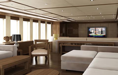 Судно рассчитано на прием до 12 гостей и 11 членов экипажа. Для высокопоставленных гостей есть шесть просторных VIP-кают со спутниковым телевидением, интернетом и отдельными ваннами. А в главной и самой большой каюте есть также рабочий кабинет и гардеробная.