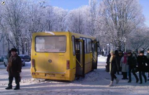 В Полтаве маршрутка попала в ловушку - задние колеса провалились в канализационный коллектор.