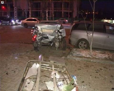 По словам свидетелей, водитель «Тойоты» разворачивался в сторону Печерского моста. В это время его сзади догнал «Субару». «Тойоту» от удара бросило на тротуар, где он зацепил припаркованный «Митсубиси» и сбил рекламный щит. «Субару» же улетела в другую сторону, где тоже протаранил рекламный щит, пишет Магнолия-ТВ.