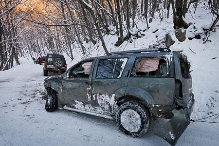 Водитель внедорожника Nissan Pathfinder не справился с заснеженной трассой, ведущей на вершину Ай-Петри, когда решил подняться на плато в субботу, 29 января, вечером. По словам очевидцев, автолюбитель поплатился дорогой иномаркой за нарушение устоявшегося на этой дороге правила «до обеда - подъем, после обеда - спуск».
