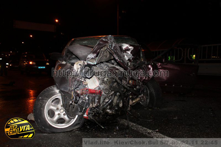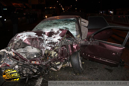 Предварительно, автомобиль «Ауди» двигался в направлении Севастопольской площади. Машина врезалась в стену подземного пешеходного перехода, разбила ограждение, ударила ларек и вылетела обратно на проезжую часть. В результате мощного удара передок «Ауди» оказался полностью уничтоженным. Деформация передней части достигла почти метра. Руль оказался в 10 сантиметрах от водительского сидения, которое сорвало с креплений, как и задний диван, пишет Друга смуга.