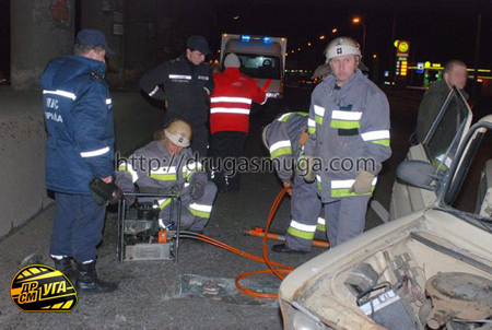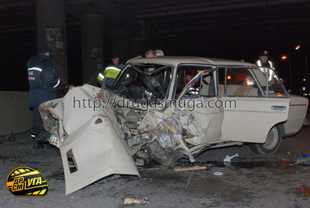 Киев. «Жигули» не смогли объехать столб. В аварии погиб водитель. Фото