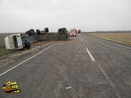 7 февраля на 45 км автодороги «Херсон - Новая Каховка - Геническ» водитель автомобиля «МАЗ», буксируя прицеп, ехал в направлении Берислава. В это время его начал обгонять «ВАЗ». Водитель «МАЗа» не выбрал безопасную скорость, не выдержал безопасную боковую дистанцию и столкнулся с легковушкой. От удара лесовоз закрутило, он съехал в кювет и опрокинулся.
