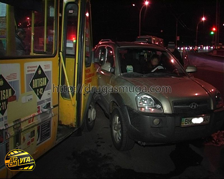 Сумы. Женщину на Hyundai Tucson подбил лихой маршруточник. В «кучу малу» влетела еще одна маршрутка. Фото