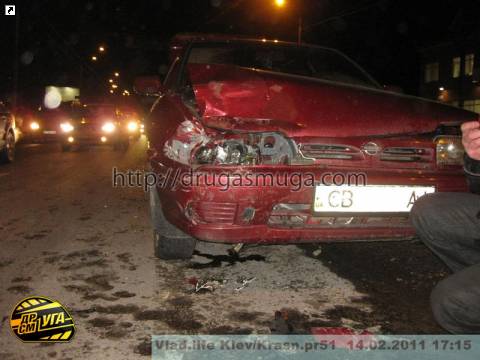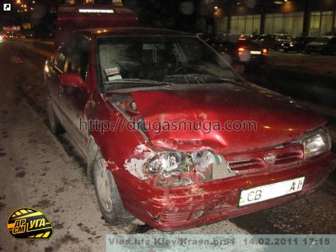 В день влюбленных в Киеве на Краснозвездном проспекте произошло ДТП - разбился «Ниссан».
