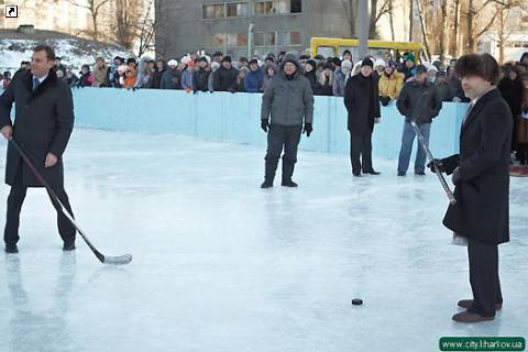 Кроме Кернеса, погонял шайбу и депутат городского совета Станислав Косинов. Правда, оба чиновника играли в хоккей без коньков.