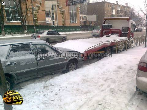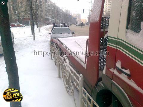 По словам водителя, автомобиль неожиданно понесло, и остановиться он смог только уткнувшись в эвакуатор.