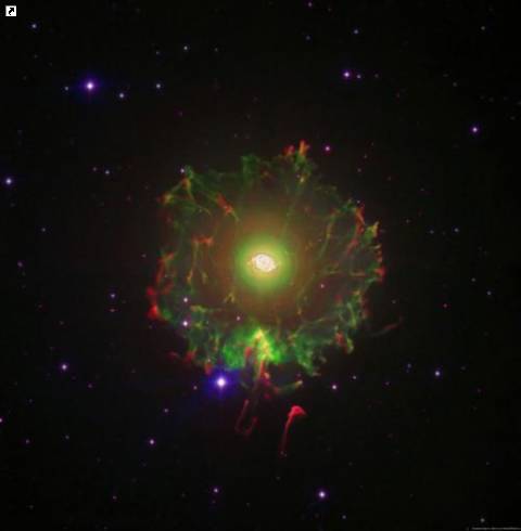 Это снимок туманности Кошачий Глаз (NGC 6543) был сделан широкоугольной камерой телескопа им.Исаака Ньютона. Эта туманность – одна из самых сложных планетарных туманностей.