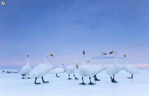 Фотограф журнала «National Geographic» Стефано Унтерхинер из Италии занял второе место в категории «Природа» с этой фотографией лебедей-кликунов на рассвете, сделанной в январе в Хоккайдо, Япония. (Stefano Unterthiner / National Geographic)