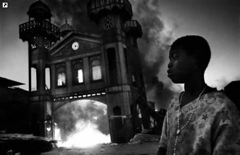 Фотограф «Contrasto» Риккардо Вентури из Италии занял первое место в категории «Общие новости» с этой фотографией горящего старинного рынка в Порт-о-Пренс, сделанной 18 января. (Riccardo Venturi / Contrasto)