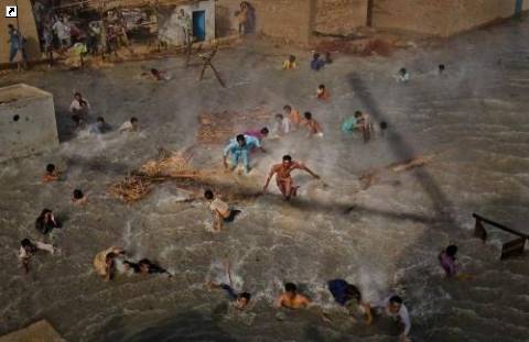 Австралийский фотограф «Getty Images» Дэниел Берехулак занял первое место в категории «Люди в новостях» с этой фотографией жертв наводнения, хватающих гуманитарную помощь, которую военные сбрасывают с вертолета, после наводнения в Даду. 13 сентября. (Daniel Berehulak / Getty Images)