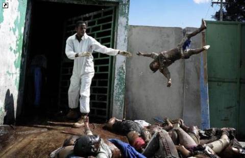 Французский фотограф Оливье Лабан-Маттеи из «Agence France-Presse» занял первое место в категории «Общие новости» за этот снимок работника морга, сделанном в больнице Порт-о-Пренс 15 января. (Olivier Laban-Mattei / AFP)