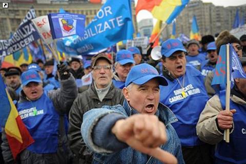 Румыния, Бухарест. Румынские военные пенсионеры провели акцию протеста перед штаб-квартирой румынского правительства в Бухаресте. Около 4000 пенсионеров выступили против пересчета пенсий румынским парламентом, который утвердил повышение пенсионного возраста.