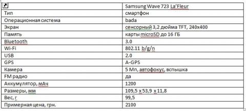 Доступна уйма рабочих столов, которые можно настроить под определенный тип задач или настроение. Например, один, – показывать время и прогноз погоды, второй – для общения с подругами в социальных сетях, третий – для поиска ближайших Wi-Fi зон и выхода в интернет, четвертый пусть показывает биоритмы, которые помогут идеально спланировать свою работу и досуг и т.д. В смартфоне изначально предустановленно несколько очень полезных программ и виджетов, в том числе напоминающих о таких важных событиях, как дни рождения подруг. В то же время не составит труда установить в смартфон другие приложения исходя из своих личных предпочтений: огромное количество программ, в том числе бесплатных, доступно в специализированном онлайн-магазине Samsung Apps. Кстати, для быстрого доступа на Samsung Apps прямо со смартфона предусмотрен специальный помощник-виджет. Сидя в уютном кафе, со смартфона удобно выходить в интернет. Почту проверить, стену в фейсбуке посмотреть, да и просто побраузить можно. Конечно разрешение экрана 240х400 не самое оптимальное для итернет-браузинга, приходится постоянно использовать вертикальную и горизонтальную прокрутку. Но это проблема всех мобильных устройств с небольшими экранами. А вот такая удобная штуковина как виджет Social Hub, объединяющий данные по всем каналам коммуникации в одну информационную ленту, очень выручает: он в разы ускоряет и упрощает общение, если активно переписывается на множестве ресурсов или социальных сетей. Какая женщина откажет себе в удовольствии послушать приятную музыку? В мультимедийном плане Wave 723 La’Fleur хорош: он с честью заменит и mp3-плеер, и FM-радиоприемник. Разве что компьютерное видео придется конвертировать в совместимый формат. Впрочем, если вы любительница посмотреть свеженькие ролики, то смартфон предложит доступ на YouTube – тут уж тратить время на конвертацию не придется. В роли карманной фотокамеры Wave 723 La’Fleur весьма неплох: 5-мегапиксельный сенсор, объектив с автофокусом и светодиодная вспышка. Вспышка позволяет снимать в условиях вечеринок, где обычно крайне проблемное для фотосессий освещение. Качество фото нам понравилось. Снимки пригодны для печати даже на формат А4, а цифровые шумы при хорошем дневном освещении практически отсутствуют. Аккумулятор смартфона имеет довольно приличную емкость. Поэтому даже при довольно активном использовании мобильного он вполне уверенно держится без подзарядки 3-4 дня. Даже если слушать музыку или радио по дороге на работу. И лишь когда вы засидитесь в интернете, используя Wi-Fi подключение, заряжать смартфон придется в тот же день. Wave 723 La’Fleur – прекрасный подарок женщине. Смартфон в шикарном кожаном чехле смотрится дорого и эффектно, а его функции - вполне современны. Для женщины такой мобильный станет просто незаменимым спутником – ведь он разрешает не только слушать музыку или радио «на ходу», но и мобильно-бесплатно переписываться с подругами в социальных сетях, даже если вы временно оказались в разных странах. Технические характеристики: