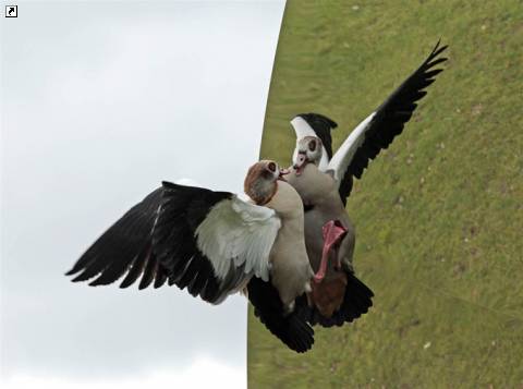 Египетский гусь атаковал свое отражение в скульптуре «Sky Mirror 2006» Аниша Капура в Гайд Парке Лондона.