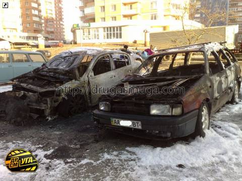 В четверг, 10 марта, ночью в Киеве на Троещине, во дворе дома по ул. Данькевича, 17, произошел пожар - сгорели два автомобиля.