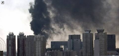 Землетрясение вызвало многочисленные пожары. В пригородах Токио загорелись промышленные объекты и электростанции.