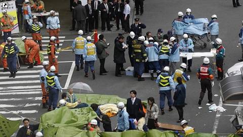 Спасатели устремились в финансовый центр Токио после сообщений о том, что среди находившихся в офисах есть пострадавшие.