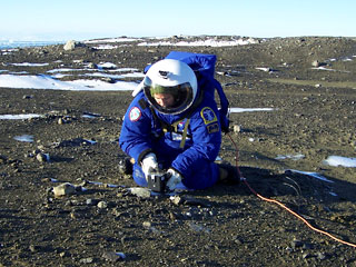 «Марс представляет собой сочетание различных условий: в его пустынях температура окружающей среды, а также ветер, близки к тем, что мы можем найти в Антарктике. Поэтому мы и испытываем скафандр именно там», - сказал де Леон. Он лично участвовал в испытаниях костюма, состоящего из надувного скафандра и шлема, оснащенного переговорным устройством.