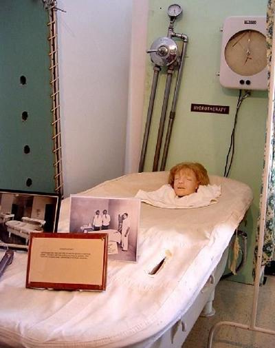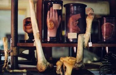Здесь стоят стеклянные саркофаги из стекла и формальдегида с сиамскими близнецами и человеческими органами, лежат черепа расстрелянных головорезов и забальзамированные органы известных убийц.