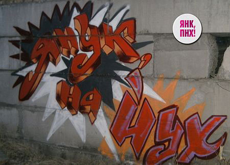 В рамках кампании «Мы все» была проведена акция, где было указано направление движения Президента. Об этом «Фразе» сообщили в оргкомитете акции. «На днепровской набережной Киева было нанесены граффити с текстом «Януковича на йух!» Также подобные надписи появились и в других местах города. Несмотря на то, что сам Глава государства все больше отдаляется от народа, и с высоты своего вертолета не увидит адресованное ему сообщение, его увидят обычные рядовые граждане, которые поймут, что они не единственные в своем протесте против режима. А также данное граффити изрядно будет раздражать подконтрольных Януковичу чиновников и правоохранителей. Всем, кто поддерживает предложенное Президенту направление движения и желает присоединиться к акции, инициаторы кампании предлагают взять себе значок с «закодированным» посланием Президенту - «ЯНК, ПНХ!». Значок можно достать бесплатно, написав на электронный ящик или позвонив, и повесить на сумку или одежду. Мы все призываем поддержать протест против режима любыми возможными методами, - говорится в сообщении.