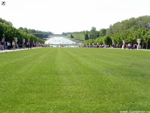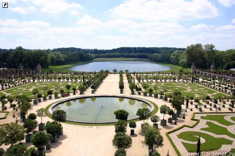 Кстати, многие деревья были вывезены из опального Во-ле-Виконта. Одна очевидица тех событий, живущая в городке Версаль, писала, что мимо ее окон бесконечным потоком в сторону дворца двигались подводы с деревьями, и казалось, будто лес ожил и передвигается по улице. Весь этот огромный комплекс создан по единому проекту. Ленотр смог сочетать единство композиционного решения с тщательной проработкой деталей. Ансамбль развивается вдоль основной оси, протянувшейся с востока на запад.