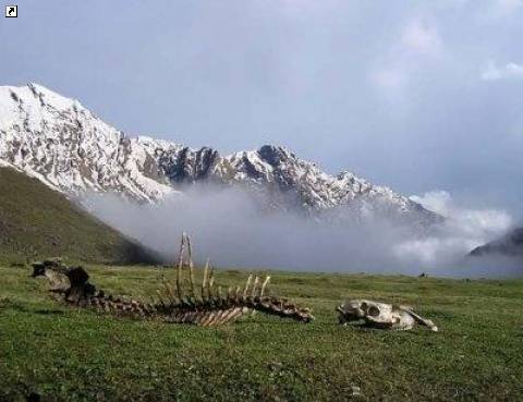 Долина смерти - это тропа, лежащая поодаль от известного паломнического маршрута вокруг горы Кайлас. Поле Долины смерти усыпано костями – здесь умирают йоги, пришедшие за озарением, очищением и обретением тайного знания. Считается, что в Долине смерти душа проходит своеобразный суд, и грешная или бессмысленная жизнь здесь обрывается.