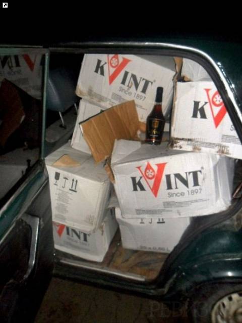 540 бутылок молдавского коньяка «Квинт сюрпризный» и 40 литров вина кустарного производства контрабандисты пытались переправить на территорию Украины.