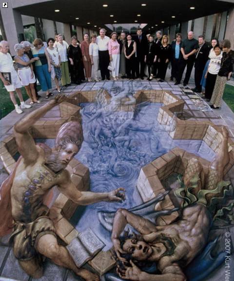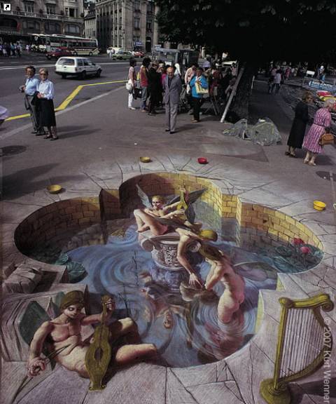 Kurt Wenner начал свою карьеру в Риме в 1982 году. Художник работает в жанре иллюзорной уличной живописи. Все его работы создают иллюзию глубины и трехмерности рисунка, если смотреть с определенной точки.