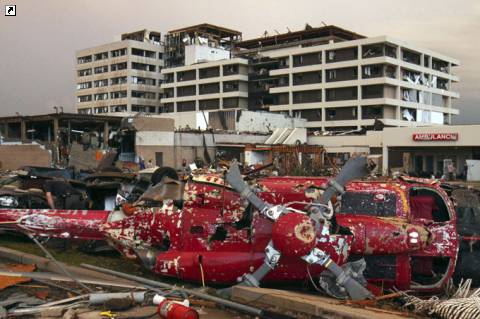 Торнадо шириной в полмили (800 метров) практически стер с лица земли город Джоплин и нанес серьезный ущерб местному госпиталю, здание которого оказалось ровно на пути смертельного вихря. В населенном пункте также были повреждены около двух тысяч здании, в том числе школы, магазины, церковь и жилые дома. Скорость ветра достигала 150 миль в час (241,4 километров в час), пишет Правда.Ру.