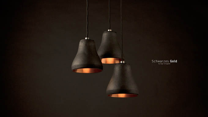 Лампы работы немецкой студии Ingo Schuppler выполнены в стильном черно-золотом оформлении. Грубоватый дизайн с золотом вдохновлен работой древних мастеров.