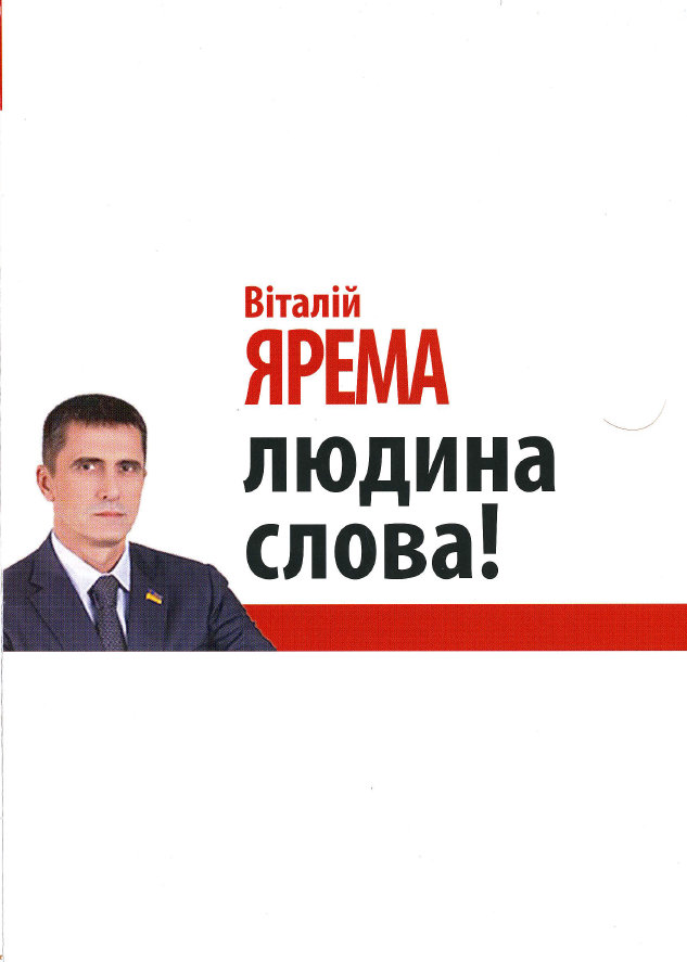 И, наконец, в распространяемой штабом политика листовке утверждается, что Виталий Ярема уже внес на рассмотрение Верховной Рады законопроект об объявлении Дарницкого района Киева зоной чрезвычайной экологической ситуации, а также о предоставлении в связи с этим жителям района 50% скидки на оплату коммунальных услуг. В то же время, как сообщили в секретариате парламента, такая законодательная инициатива на рассмотрение депутатского корпуса не поступала.