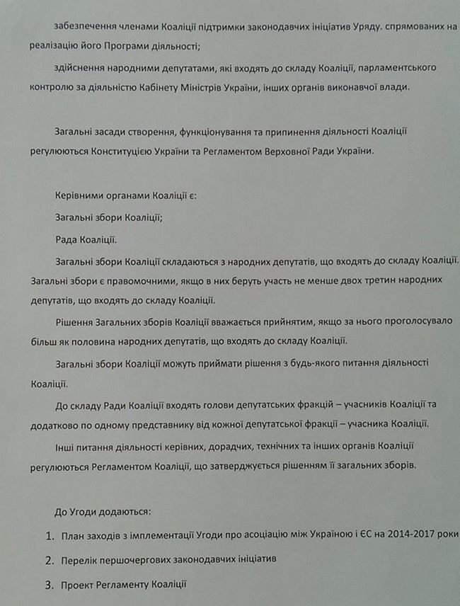 Согласно документу, стратегическими задачами коалиции являются имплементация ассоциации с ЕС и создание предпосылок для получения Украиной членства в Евросоюзе, сообщает ЛIГАБiзнесIнформ.