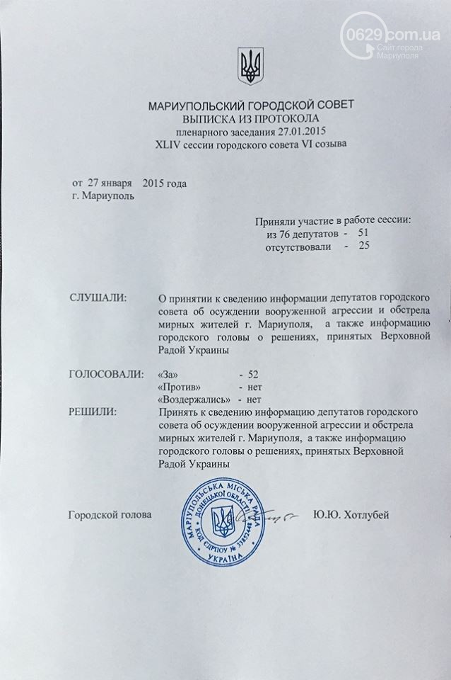 Из решения Мариупольского горсовета, который 27 января признал Россию страной агрессором, а «ЛНР» и «ДНР» террористами, исчезли ключевые слова. Об этом сообщает мариупольский сайт 0629.