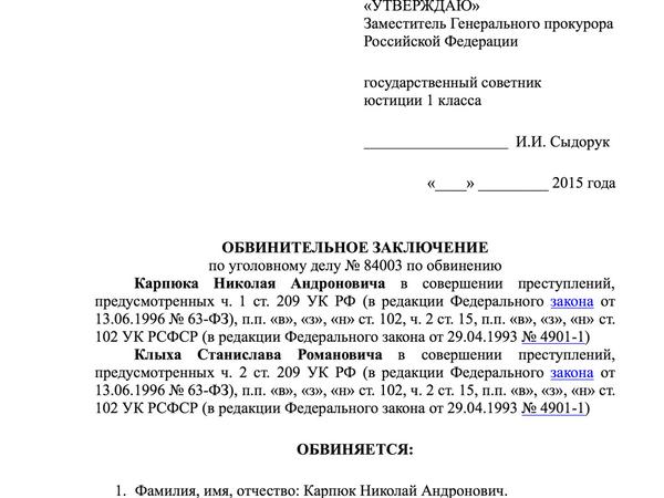 В документе говорится, что российские следователи имеют данные, что "к 27.12.1994 в город Грозный также прибыли другие известные ему (Клыху - ред.) члены УНА-УНСО".