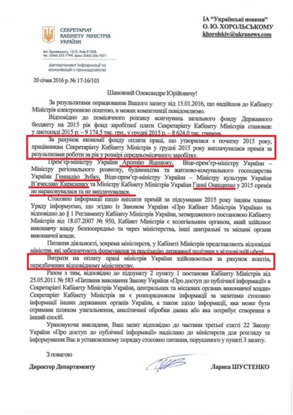 Всего на заработную плату в 2015 году сотрудникам Кабмина выделили 9,17 млн грн. На конец 2015 года в Секретариате КМУ работали 583 сотрудника.