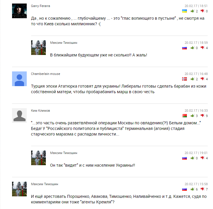 Российский политолог и публицист Андрей Пионтковский: «Хватит жаловаться, действуйте. Арестуйте за государственную измену Артеменко и Медведчука. Они предали национальные интересы Украины. Киев постоянно жалуется и упрекает Запад в недостаточной поддержке. А как вас в полной мере поддерживать, если соучастник убийств на Майдане, организатор российской агрессии Медведчук до сих пор является крупным госдеятелем, занимает посты и ведет в Минске переговоры от имени всей страны? Арестуйте Артеменко и Медведчука — тогда реакция Запада на действия России будет более жесткой».