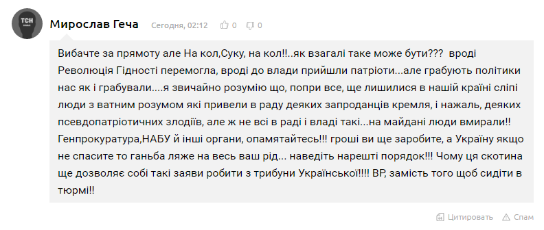 Председатель Верховной Рады Андрей Парубий: "Я думаю, организаторы этой акции стоят глубже за спиной Артеменко. Я приветствую решение Радикальной партии Ляшко по исключению этой человека, и я считаю это элементом направленной кампании внутри Украины и за ее пределами, чтобы попытаться легализовать или дать законные основания оккупантов на территории Украины".